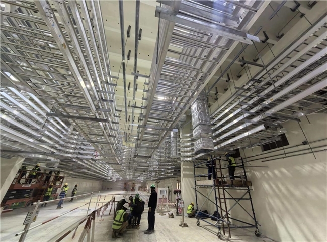电仪专业同步加快推进,在三个配电室内集中开展电缆桥架及槽盒安装作业,并在已具备条件的钢结构管廊上提前展开电缆桥架敷设,做到作业面一经移交即可迅速进场施工,有效保障了专业衔接顺畅,相关工作成效获得总承包方和业主的肯定。