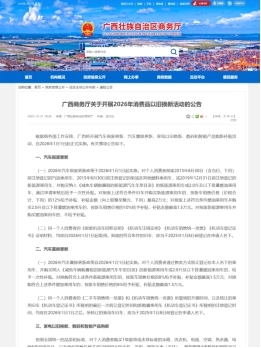 此外,广西举行“购在中国—2026广西乐购新春消费季”活动,围绕国家以旧换新政策,有序开展多种补贴活动,各市亦将推出系列购车补贴活动,让广大消费者得到更大实惠。